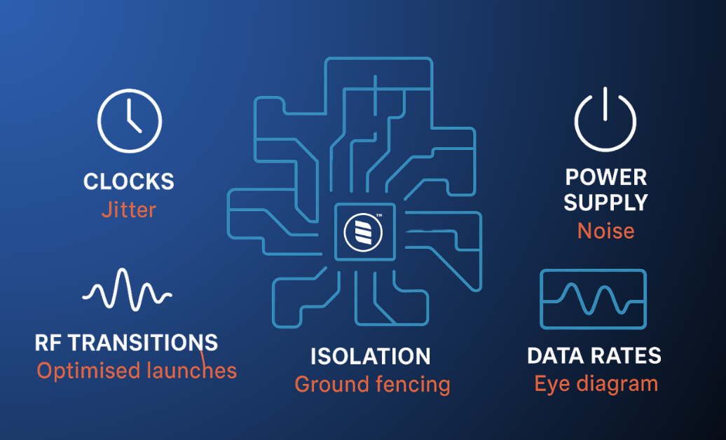 We architect clocking with care, employing isolation strategies and implement layouts that are optimised for low leakage performance to reduce and improve phase noise and jitter performance. Our engineers apply proven techniques to physically and electronically separate clock sources from critical RF paths, ensuring signal integrity is maintained.